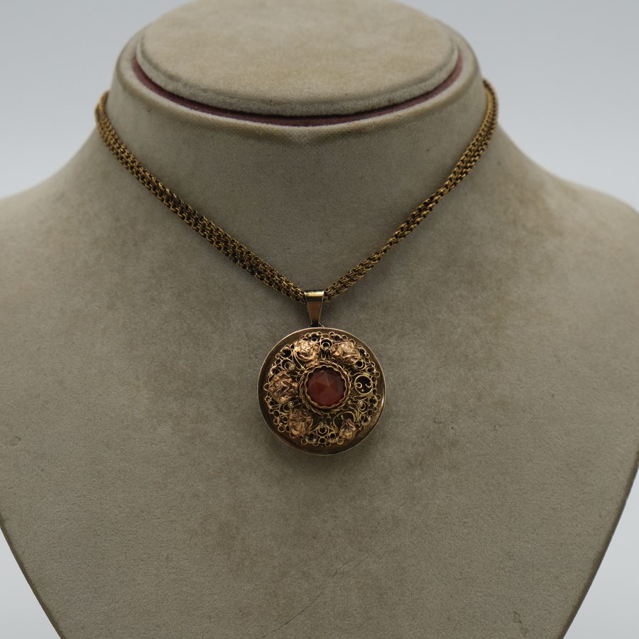 Hanger met carneool aan gouden collier