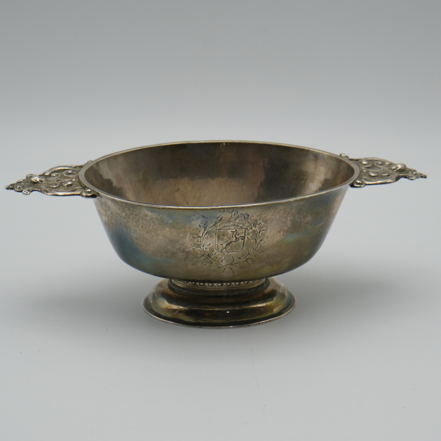 Zilveren brandewijnkom met familiewapens