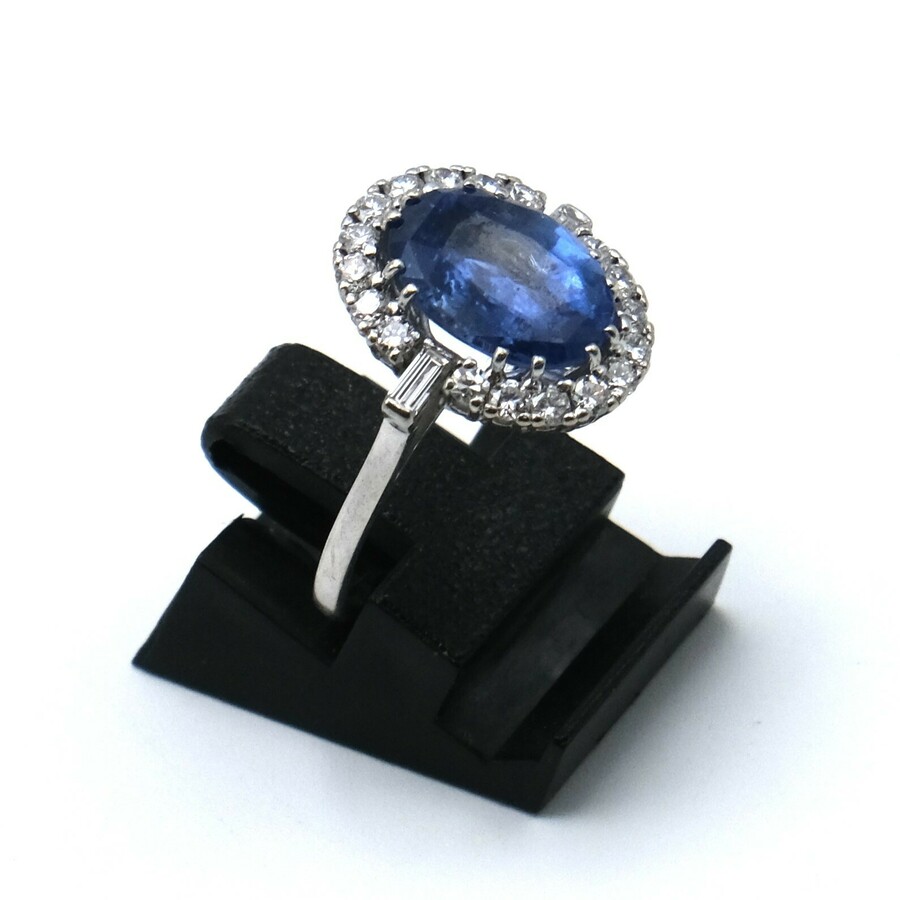 Witgouden entouragering met saffier