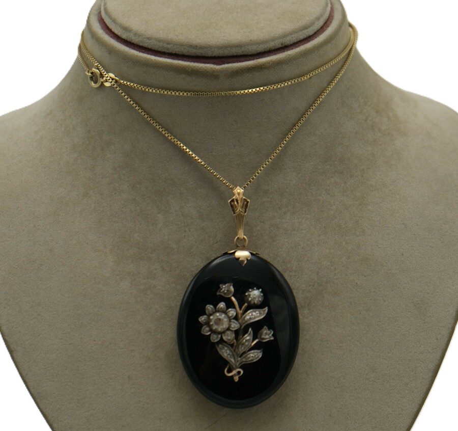 Antiek Onyx medaillon met goud en briljant