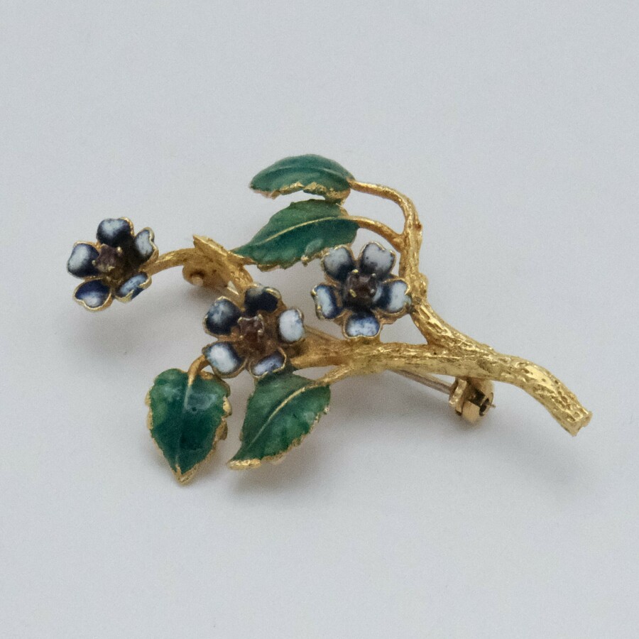 18 karaats broche met emaille en robijn