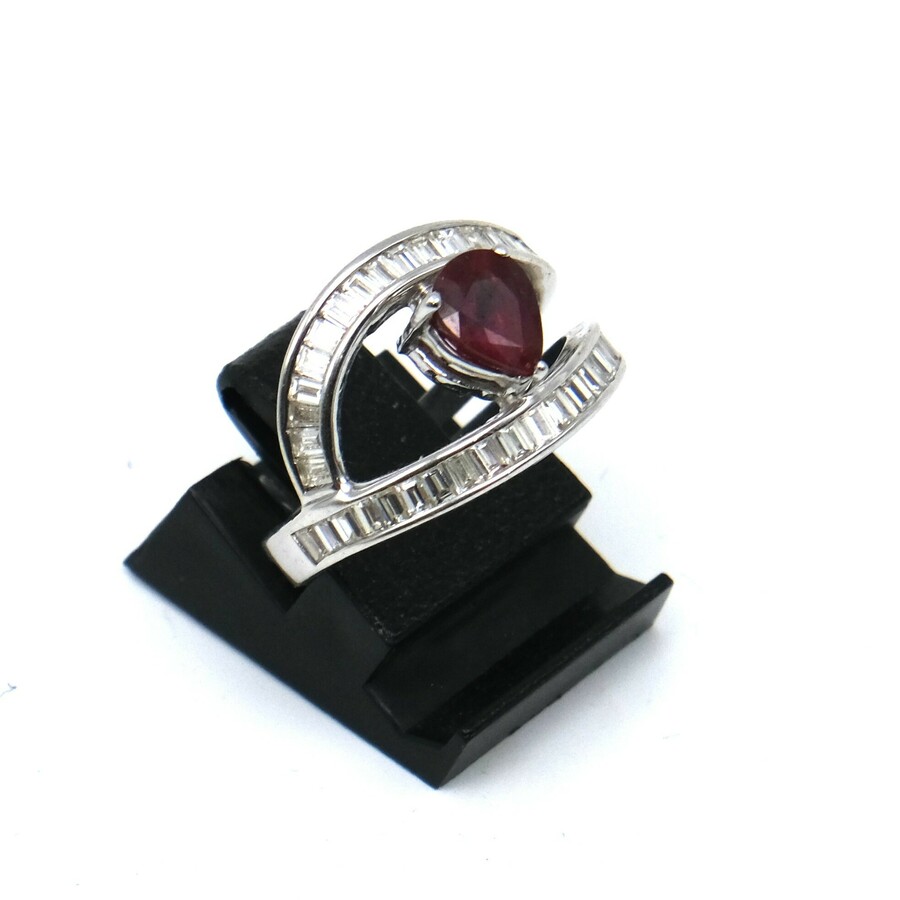 Gouden damesring met robijn en diamant
