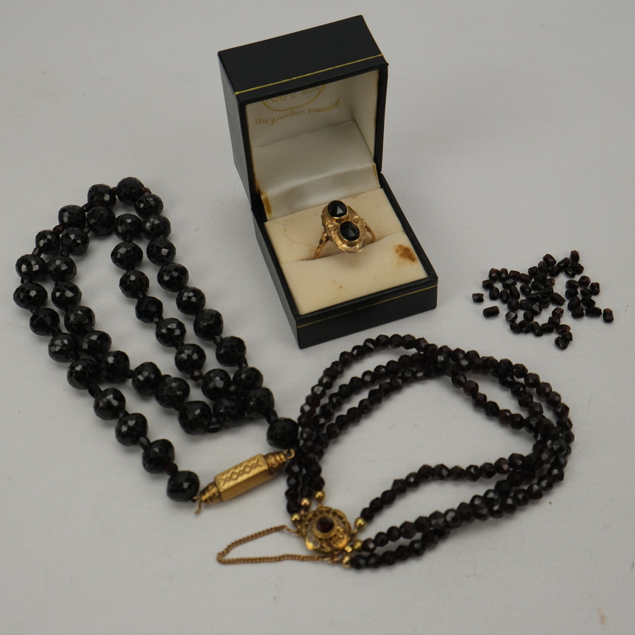 Sieradenset, granaat met goud
