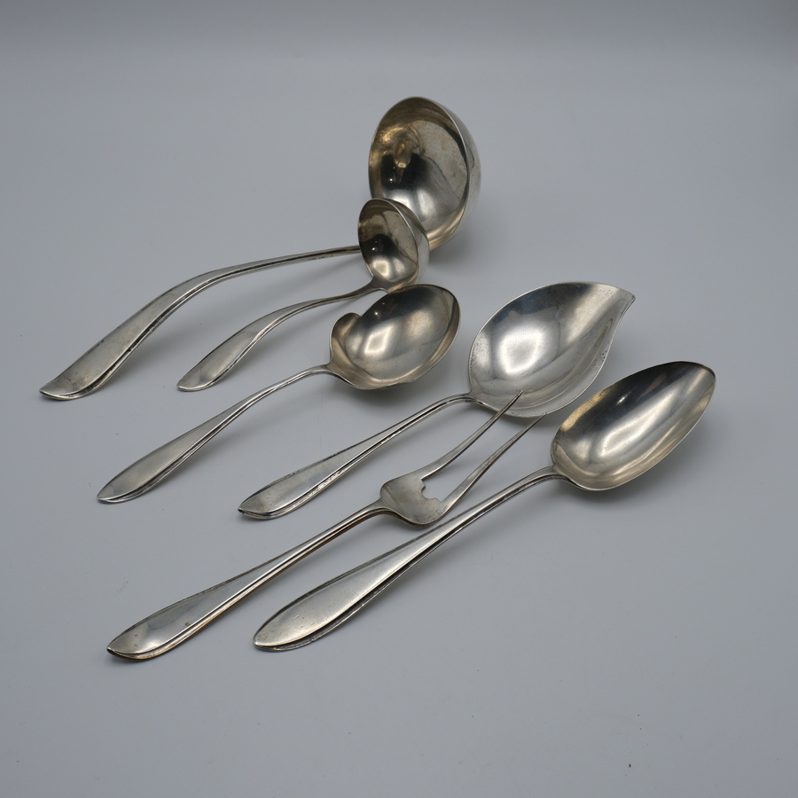 Zes stuks zilveren schepwerk