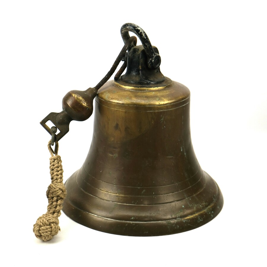 Een grote 20e eeuwse bronzen scheepsbel met klepel