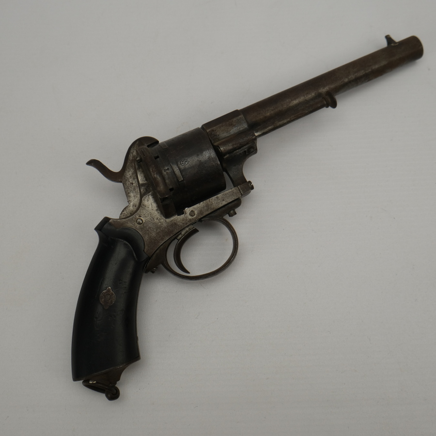 Een Franse of Belgische mid-19e eeuwse penvuur revolver, gemerkt ‘ELG’.