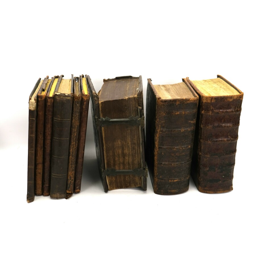 Lot van drie 18e eeuwse Statenbijbels, o.a. Nicolaas Haas & Jacob & Hendrik Keur. Met daarbij zes liedboeken, 19e eeuws, met opschrift ‘Hervormd Kerkgenootschap Sneek’ en ‘Kerkeraad Snee...