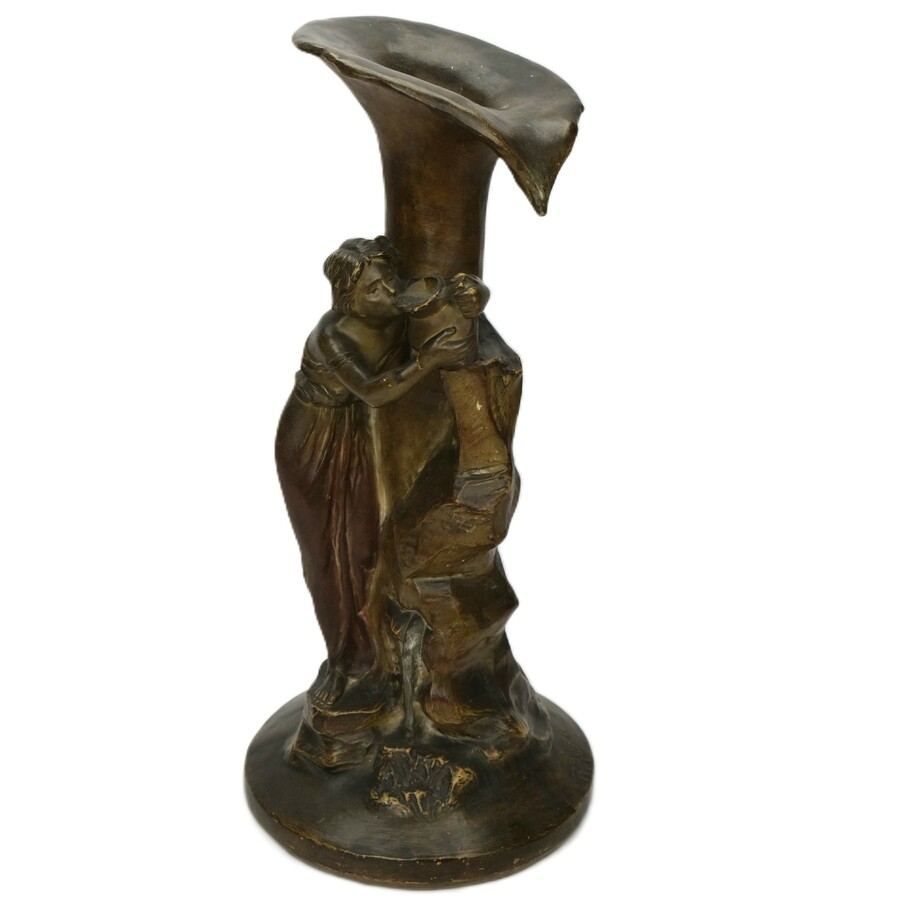 Terracotta vaas met afbeelding van vrouw met kruik. Art Nouveau stijl. Gemerkt R. Aurili.