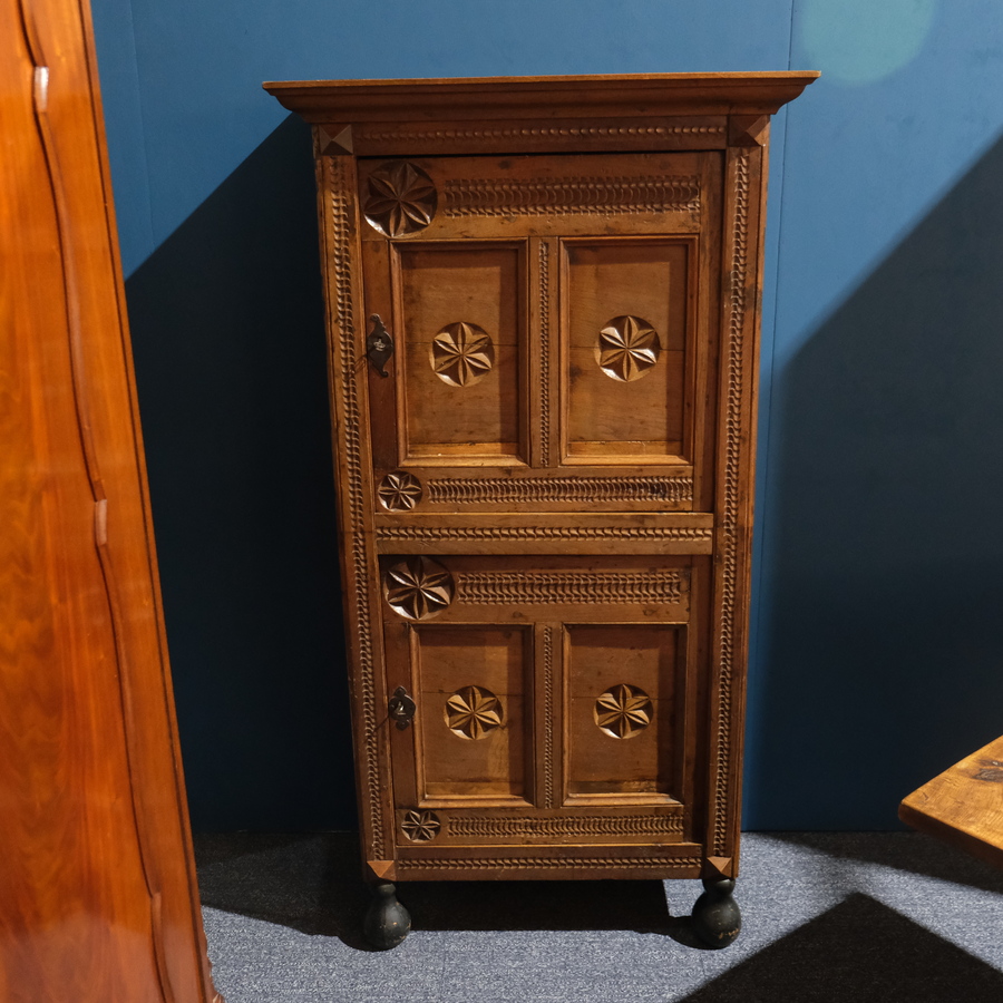 Antieke Friese bruidskaraf versierd met etswerk en voorzien van een zilveren stolp.