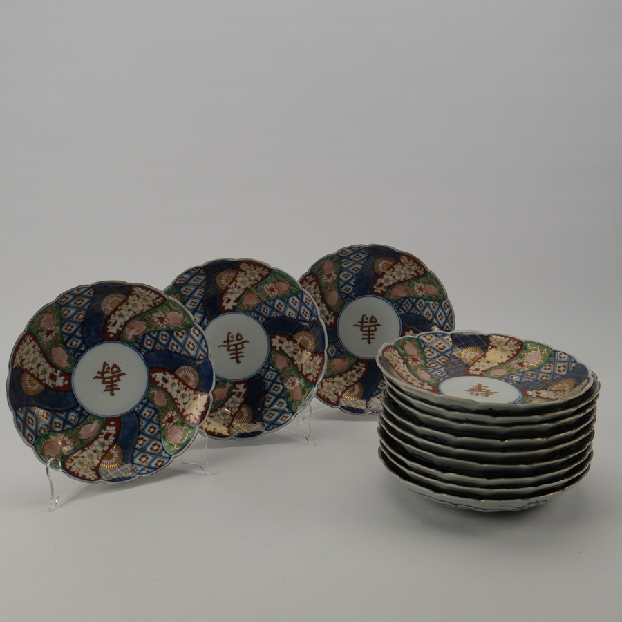 Twaalf Japanse porseleinen borden