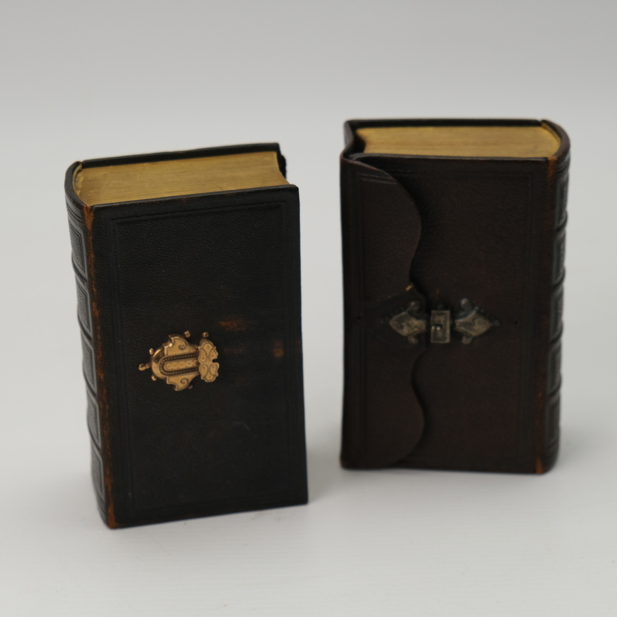 Lot van twee 19e eeuwse bijbels, één met zilveren slot en één met gouden slot.