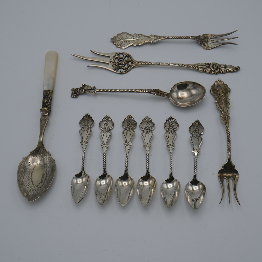 Lot divers zilveren schepwerk, waaronder zes advocaatlepeltjes