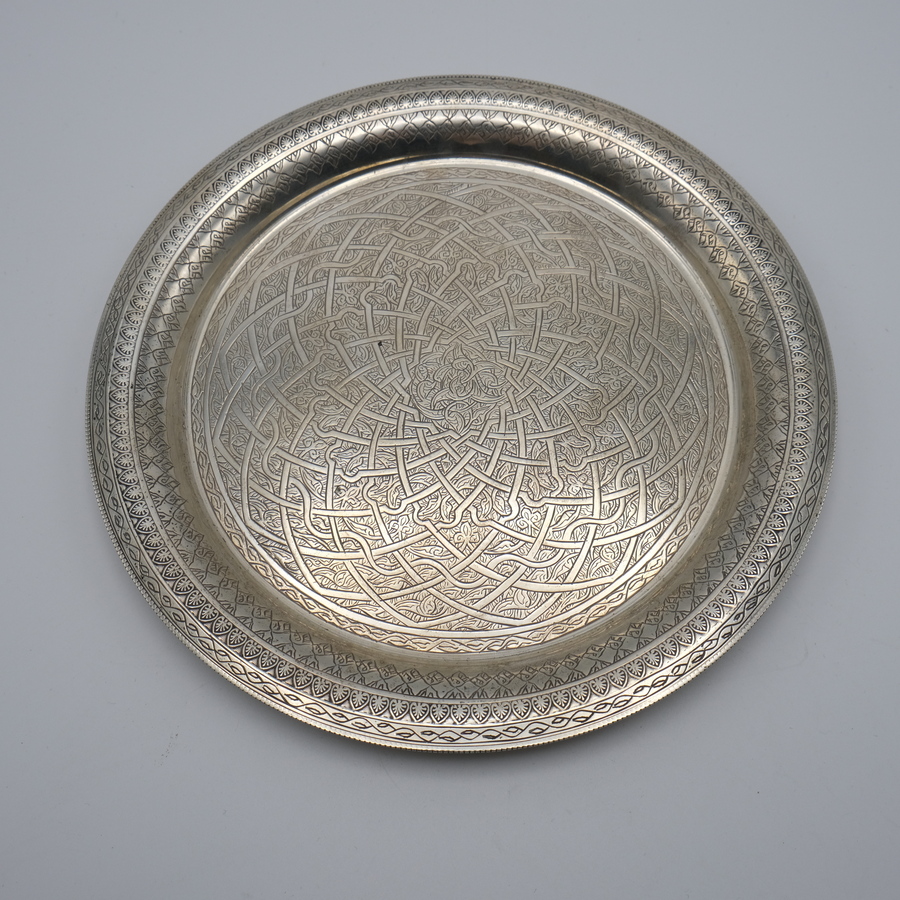 Een 20e eeuwse tweede gehalte (900/1000) Egyptisch zilveren dienblaadje met geometrische decors.