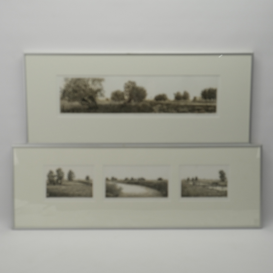 Lot van twee etsen, in lijsten. Eén drieluik, getiteld ‘Noord-Holland’. Met daarbij een ets getiteld ‘Uiterwaard’. Beide rechtsonder gesigneerd Wim van der Meij (Leiden, 1949), gedateerd 1990 en...
