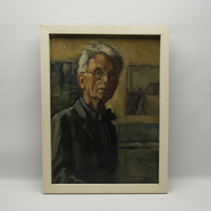 Schilderij, olieverf op doek. Zelfportret, rechtsonder gesigneerd Piet Hein van Asperen (Harlingen 1895 - Leeuwarden 1969)
