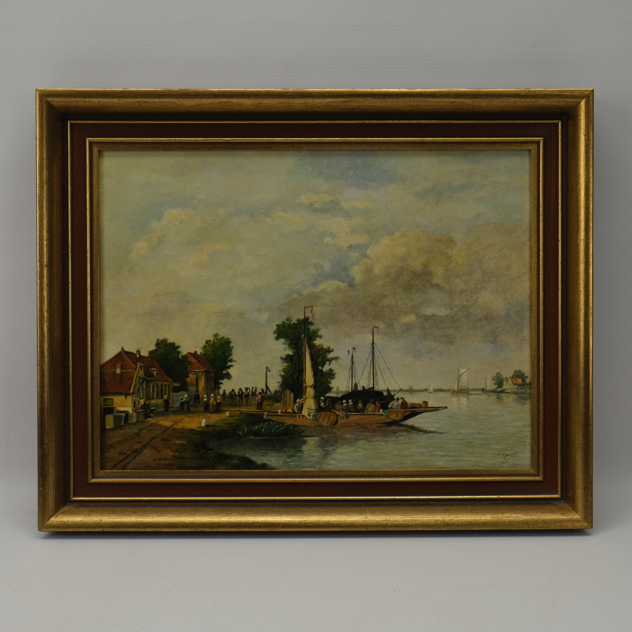 Schilderij, olieverf op doek. Riviergezicht. Rechtsonder gesigneerd ‘German’