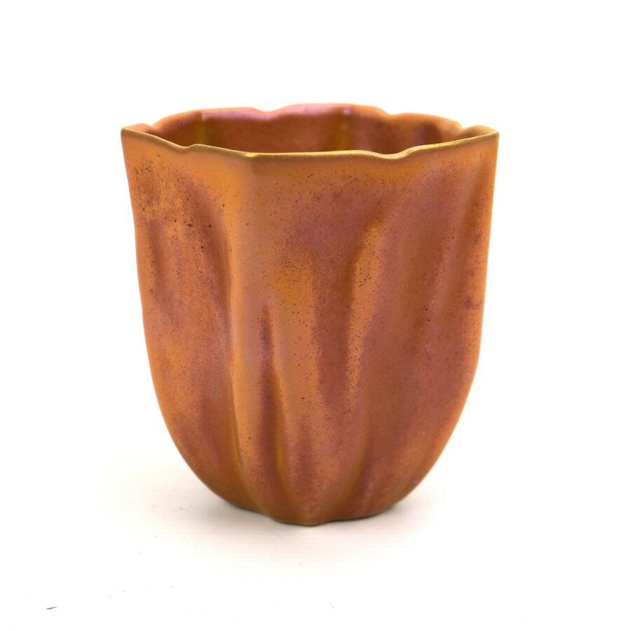 Een oranje geglazuurde designvaas, ontwerp en uitvoering Kasper Mobach. Gesigneerd aan de onderzijde.