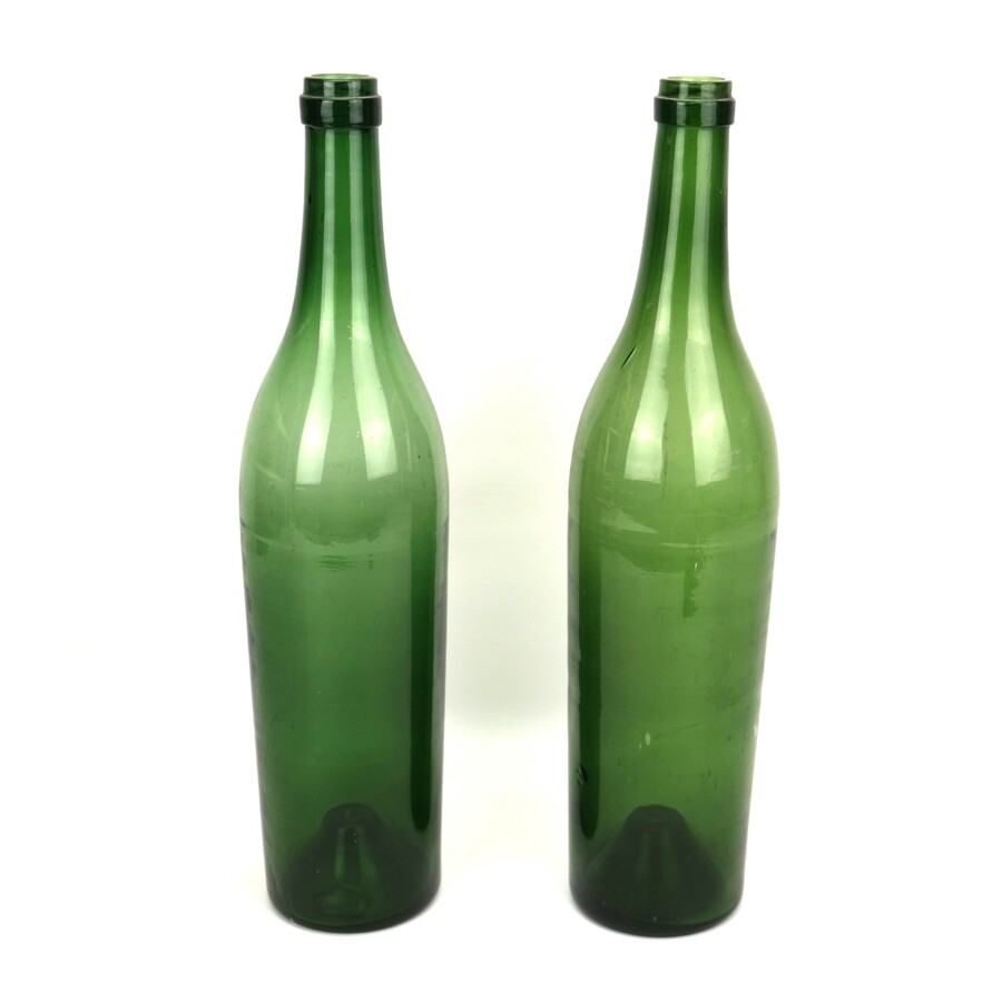 Lot van twee grote antieke groenglazen flessen, 19e eeuws