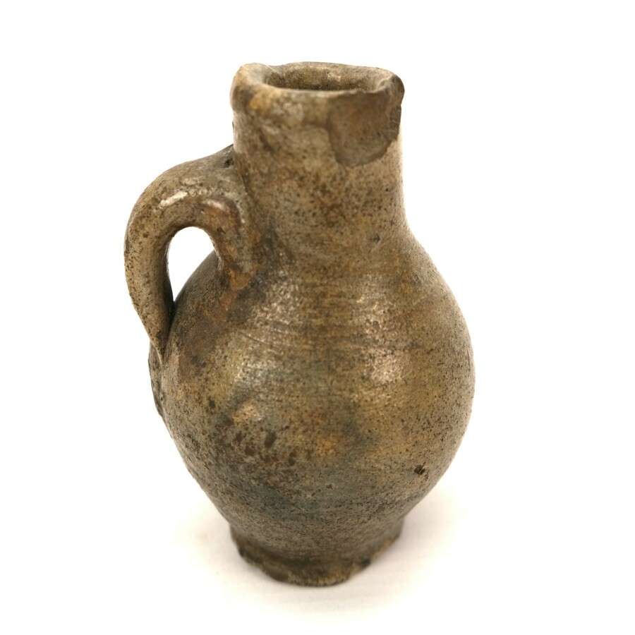 Een klein Duits aardewerken kruikje, 17e eeuws