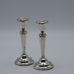 | Kavel | 337. Twee zilveren kandelaren op ronde voet |