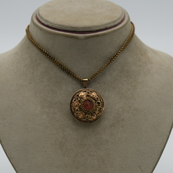 | Omschrijving | Een 14 karaats tweerijig geelgouden collier met antieke 19e eeuwse filigrain hanger met carneool, gemaakt van een slot van een halssnoer |
