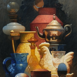 | Omschrijving | Schilderij, olieverf op board. Stilleven met diverse keukenbenodigdheden en olielamp. Rechtsonder gesigneerd Epko Cordel (Bolsward, 1957) en gedateerd 2001. |