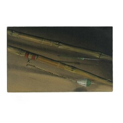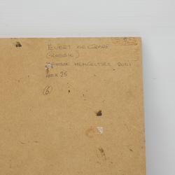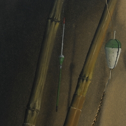 | Omschrijving | Schilderij, olieverf op paneel. 'Bamboe hengeltjes'. Gesigneerd (op achterzijde) Evert de Graaf (1953-2013), gedateerd 2001 |