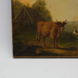 Schilderij, koeien. Hollandse School 19e eeuw
