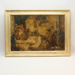 | Omschrijving | Schilderij, olieverf op doek. De bespotting van Christus, gesigneerd Johannes Hendricus Jurres (1875-1946) |