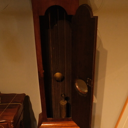 | Omschrijving | Een antieke 18e eeuwse Hollands staand horloge in mahoniehouten gefineerde kast. Wijzerplaat met dagaanduiding, gesigneerd Steven Hoogendijk, Rotterdam |