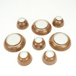 | Afmetingen | Schotels 10,5cm doorsnede en kopjes 3,5 cm hoog |