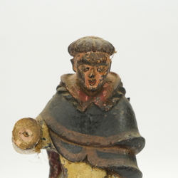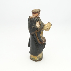 | Omschrijving | Een antiek Europees uit vruchtenhout gestoken sculptuur van monnik met een bijbel in de hand. Met resten van polychromie. Zuid Frankrijk of Spaans. |