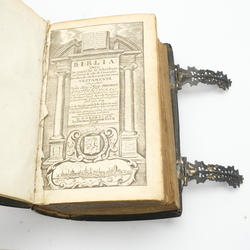 | Omschrijving | Een antieke 18e eeuwse Bijbel, Hendrik Keur 1748 met kopergravures, met twee gegoten 18e eeuwse zilveren sloten, meesterteken BN of NB |