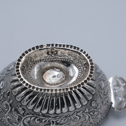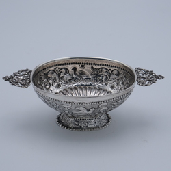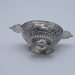 | Omschrijving | Een laat 19e eeuwse tweede gehalte (835/1000) zilveren brandewijnkom, fa. H. Adema Leeuwarden, 1895 |