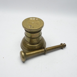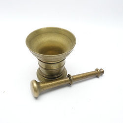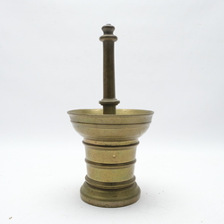 | Omschrijving | Een antieke 17e eeuwse ronde bronzen vijzel met stamper |