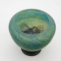 | Omschrijving | Een groene Franse glazen pate verre vaas met zwarte voet, gesigneerd Daum Nancy, ca. 1920 |