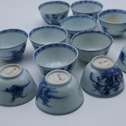 | Omschrijving | Een lot van dertien 18e eeuwse Chinees porseleinen kopjes. Blauw/wit decor landschappen met pagodes. Afkomstig uit het Nanking cargo. Geveild bij Christie's in 1986. |