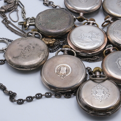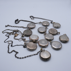 | Kavel | 337. Dertien zilveren zakhorloges met zeven zilveren horlogekettingen |