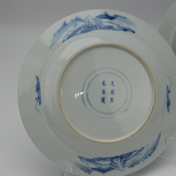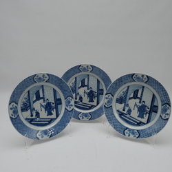 Drie Chinees porseleinen borden, 19e eeuws naar Kanxi voorbeeld.