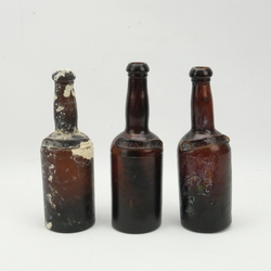 | Omschrijving | Lot van drie 19e eeuwse glazen flessen met opschrift ‘F. Peters’. Herkomst: Tek Sing scheepswrak, 1822. |