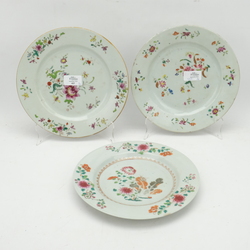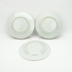 | Omschrijving | Drie 18e eeuwse famille verte Chinees porseleinen schotels. Diverse florale randen en decors van pioenrozen op het plat. |