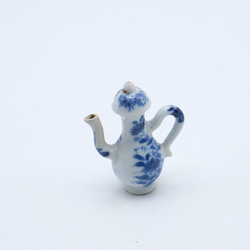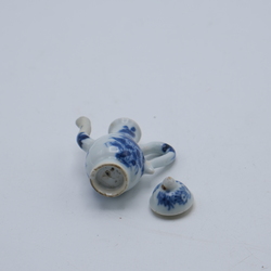 | Omschrijving | Een vroeg 18e eeuws Chinees porseleinen miniatuur zgn poppegoed theekan met deksel. Blauw/wit floraal patroon. |