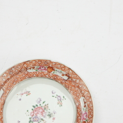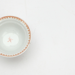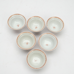 | Omschrijving | Lot van zes antieke 18e eeuwse porseleinen kop en schotels, floraal Famille Rose decor met geometrisch ruitdecor op de rand. Kopjes met Chinees teken aan de binnenkant. China, Qianlong periode (1735-1796) |