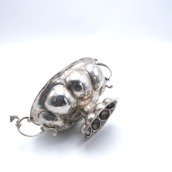 | Omschrijving | Een 20e eeuwse tweede gehalte (835/1000) zilveren brandewijnkom, Gronings model. Meesterteken 'PH' |