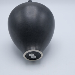 | Omschrijving | Een zwart porseleinen vaas met smalle tuit en voorzien van een kristalglazuur. Gemerkt aan de onderzijde Hein Severijns. |