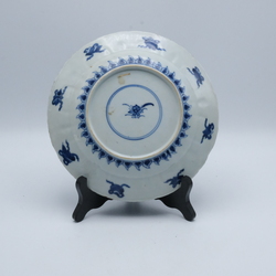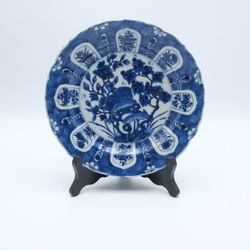 | Omschrijving | Een laat 17e eeuwse Chinees porseleinen schotel. Blauw/wit zgn "cracked ice". Met florale motieven in cartouches op de randen en bloemen op rotsen op het plat. |