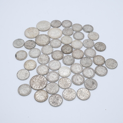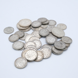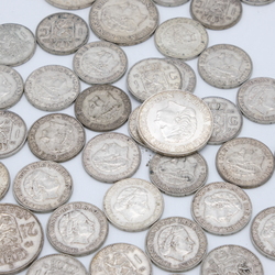 | Omschrijving | Lot divers 20e eeuws Nederlands zilveren muntgeld: 5 zilveren Rijksdaalders 1959-1966 en 44 zilveren Guldens, 1954-1965 |