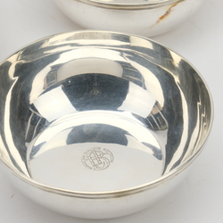 | Omschrijving | Een set van tien 20e eeuwse eerste gehalte (925/1000) zilveren vingerkommen. Aan de binnenzijde gemerkt met monogram ‘TBH’. Een kom zonder monogram. Gemerkt Begeer, jaarletter H = 1917. |