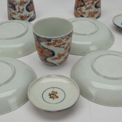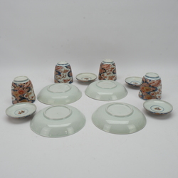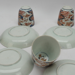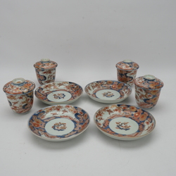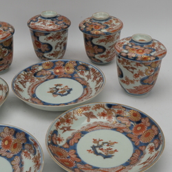 | Omschrijving | Lot van vier antieke Japans kop en schotels met deksels, met decor van bloemen en vogels. Edo periode, 18e eeuw |