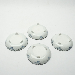 | Omschrijving | Lot van vier 18e eeuwse Japanse schaaltjes met reliefdecor, gecontourneerde rand en tempel op rots |